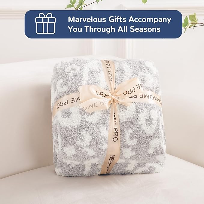 NEXHOME PRO Leopard Soft Blanket, Fuzzy Throw Blanket for Couch Bed Sofa Picnic, Knit Blankets for Women Gifts Grey 50 x 60 inches