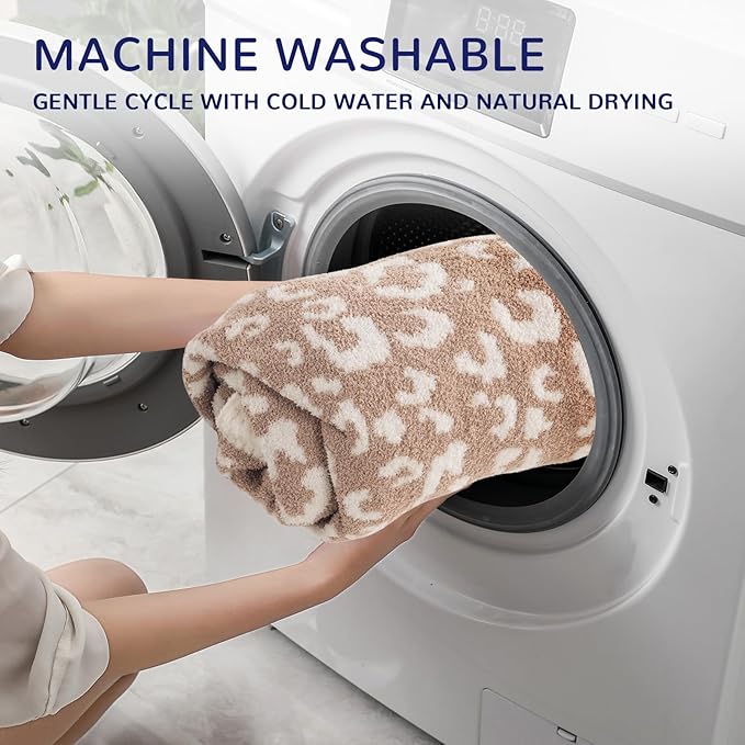 NEXHOME PRO Leopard Soft Blanket, Fuzzy Throw Blanket for Couch Bed Sofa Picnic, Knit Blankets for Women Gifts Beige 50 x 60 inches