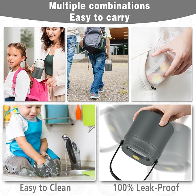 - 100% Leak proof - Our soup thermo uses vacuum sealing technology, rubber sealing for snack container, 100% leak proof sealing, which can be safely placed in a backpack or held in your hand. Very suitable for school, work, and travel.