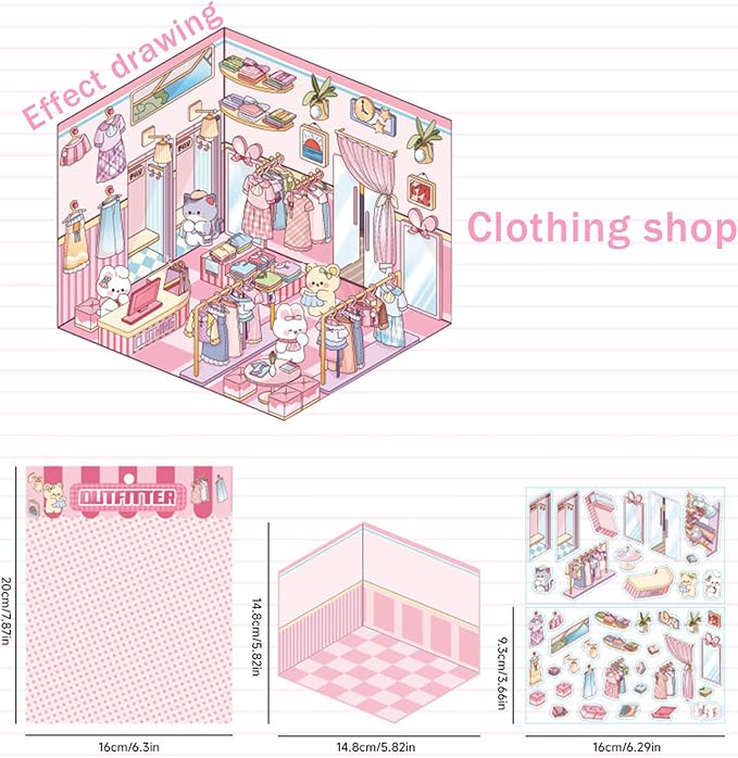 - Creative DIY Project: Engage in a fun and creative activity with our DIY 3D house stickers, suitable for both kids and adults. Create charming scenes of supermarkets, coffee shops, bookstores, and more using the cute cartoon stickers included in the set.