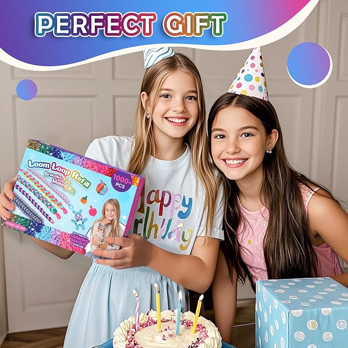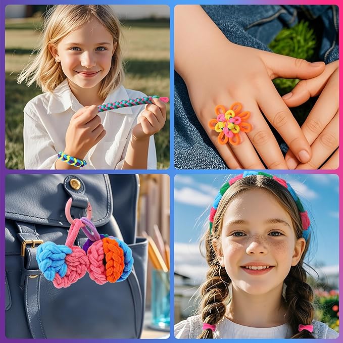 FUNiOi 1000 PCS Cat Weaving Loom Refill for Bracelet Making Kit, DIY Arts and Crafts Supplies, Baby Hair Ties for Girls Ages 6-12, Gift Idea for Kids and Beginners