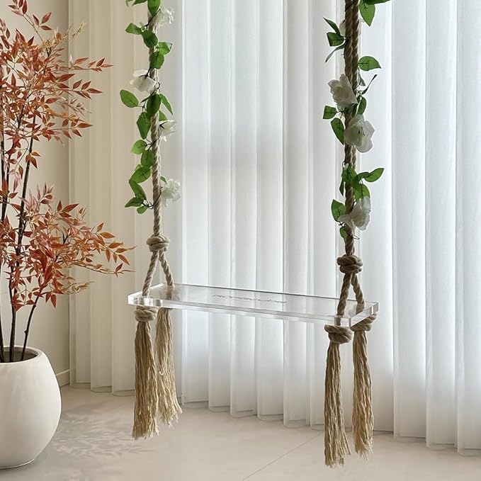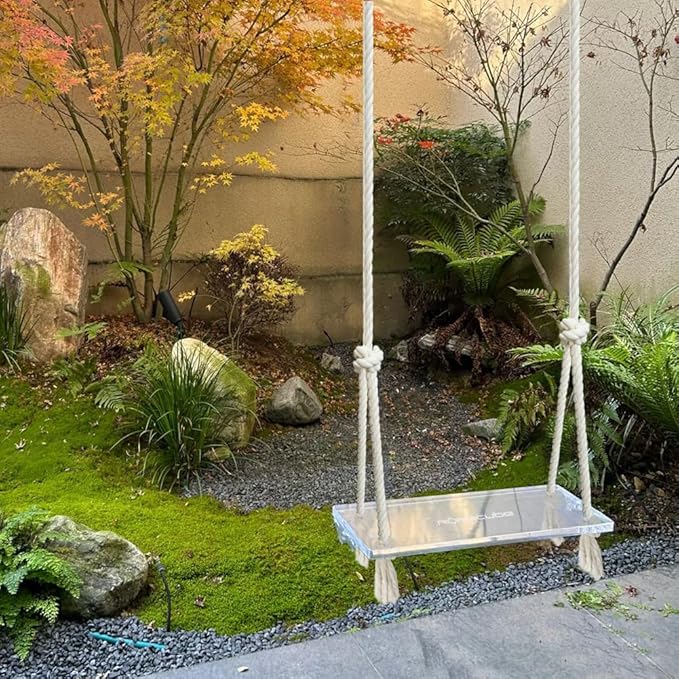 - CRYSTAL-LIKE SWINGS: Acrylic offers up to 92% light transmittance, creating a crystal-clear, floating effect, the transparent seat blends seamlessly with any indoor or outdoor decor, from gardens to living spaces.