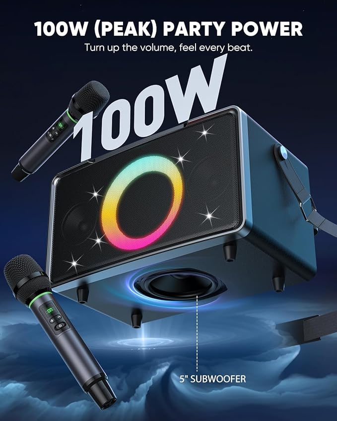 - WIRELESS MIC: Bluetooth speaker with microphone supporting 3 modes (KTV/Reverb/Speech). Bring it to your living room for family party sessions, or take it outdoors for park barbecues and picnics—turn any space into your personal stage.