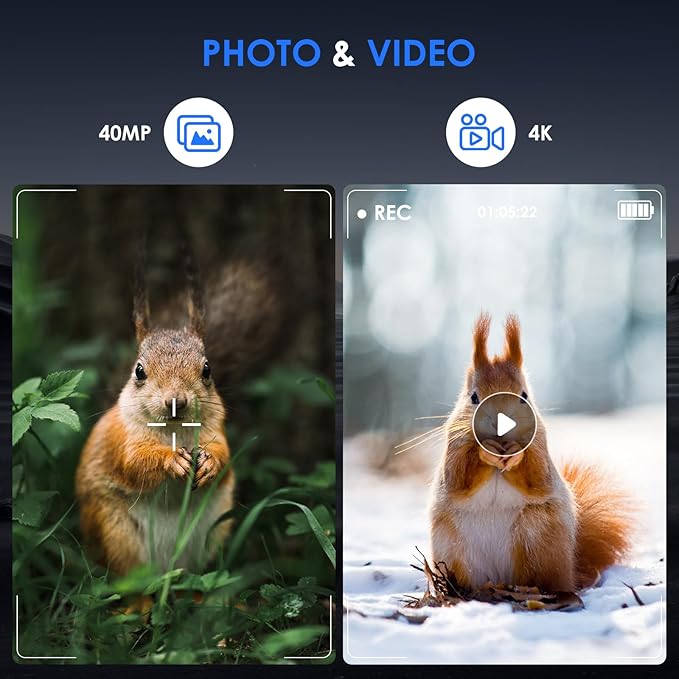 - 【Versatile Capture & Display】This night vision camera supports both photo and video recording, and features a 2.4-inch HD display with three adjustable brightness levels—delivering clear viewing and easy operation in any lighting condition.