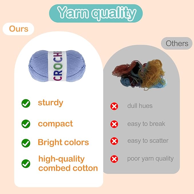 - Premium Yarn for Long-Lasting Creations-Crafted from 5-ply combed cotton yarn, this crochet animal kit uses durable, tangle-free material that’s soft yet sturdy—perfect for practicing stitches and creating cuddly keepsakes.