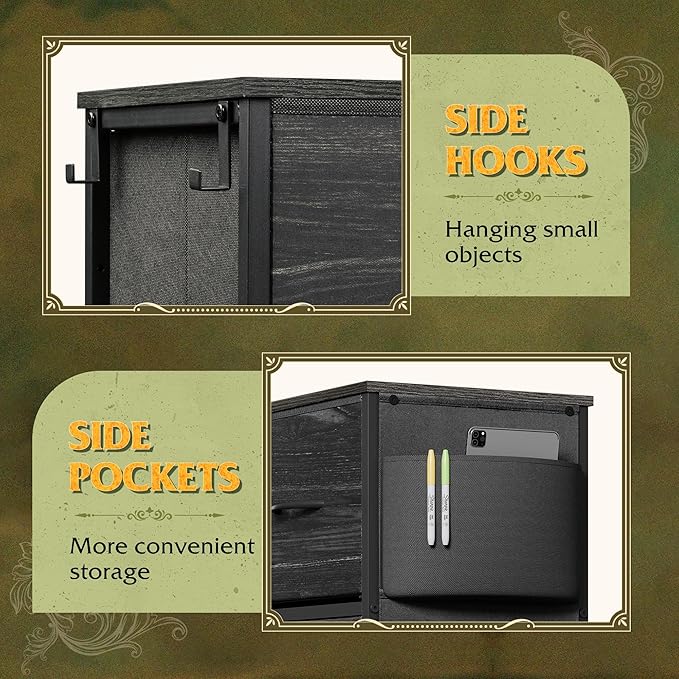 - ✅【Stylish and Versatile】 The furniture is made of sturdy steel frame support, MDF wooden waterproof countertop, and premium non-woven fabric. The back is reinforced with tension bars to enhance overall stability, making the drawer very easy to slide in and out and align correctly. Ensure safe and worry free use. The wooden top can bear up to 70 pounds, providing a sturdy surface for items such as televisions or display vases, lights, and books