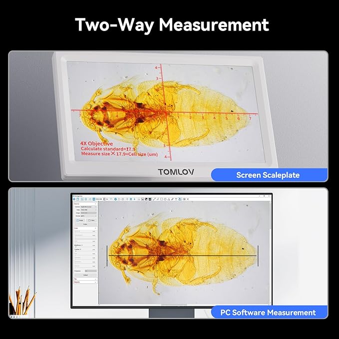 - On-Screen Scale for Scientific Accuracy: A built-in measuring overlay lets learners take precise readings across different magnification levels—this children’s microscope makes STEM learning more interactive and measurable