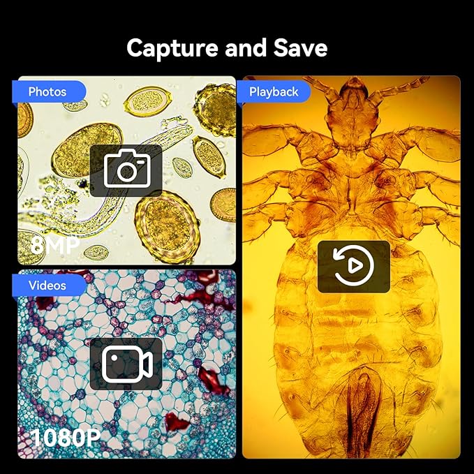 - Record Science in Motion with Clarity: With built-in 8MP imaging and 1080P video, you can capture scientific moments like swimming microorganisms—delivering far more than a typical kids' microscope by blending learning with hands-on recording