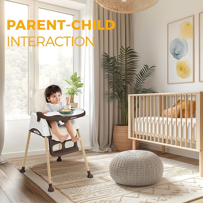 - Multiple Safety Protections: Sturdy steel tubes and a golden triangle design prevent tipping. The adjustable 5 point harness high chair ensures your baby’s safety, making this highchair a top choice for parents.