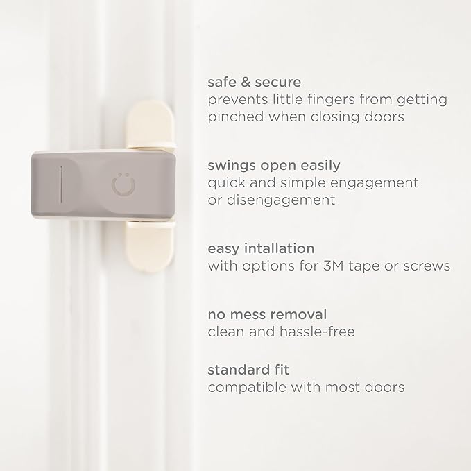 - Prevent Finger Pinches: Ubbi’s door pinch guard keeps tiny fingers safe from accidental pinches caused by closing doors. The hinged design pivots smoothly, preventing doors from slamming shut while allowing adults to easily open and close doors when needed.