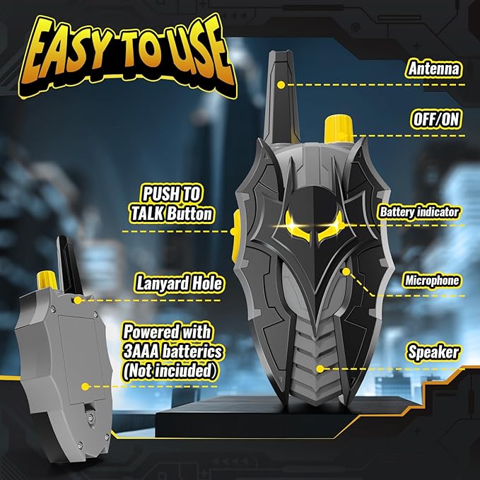 - Eye-Catching Design: Our walkie talkies for kids come in a striking design that’s sure to captivate children. With cool flashing eye lights and a bold, sleek look, it’s not just a tool for communication but also a toy that kids won’t want to put down. These walkie talkies bring excitement to any adventure, making them an ideal choice for toys for kids 3-5 4-6 6-8 8-12 boys.