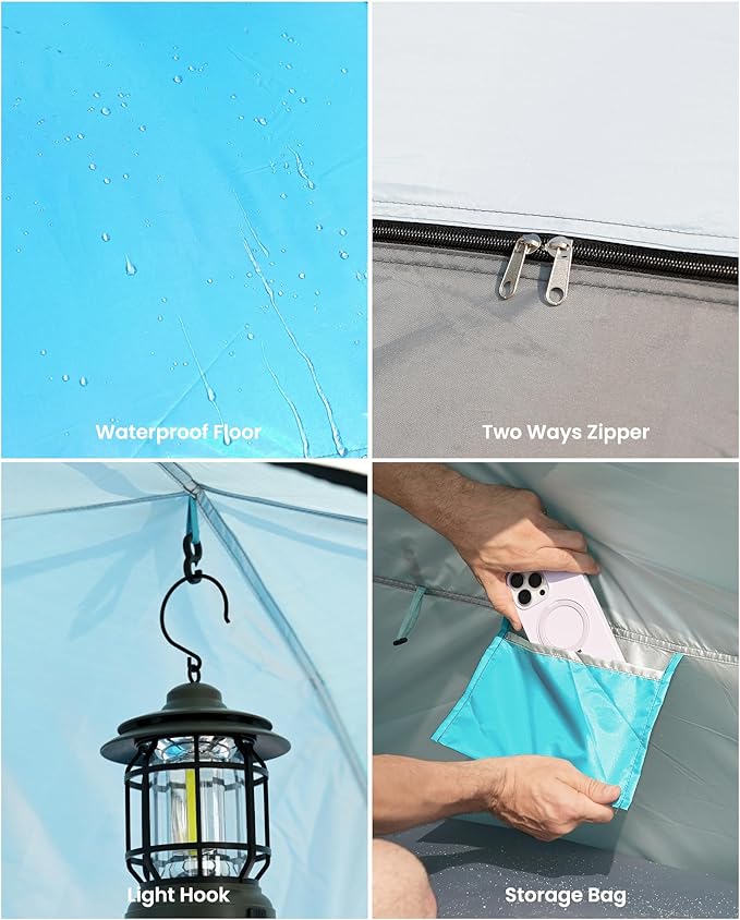 - Versatile & Thoughtful Design: Features a convenient zippered door for quick privacy when changing clothes. The extended front floor creates bonus space - perfect for gear storage, kids' play area, or relaxing in the shade