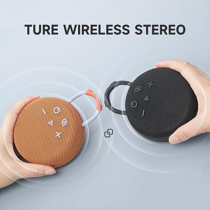 - Tough Enough for the Trail:Wrapped in a rugged rubber shell and built to be IPX7 waterproof, this mini Bluetooth speaker handles splashes, dirt, and drops like a champ; toss it in your daypack or clip it to your bike and hit the road with your soundtrack on lock