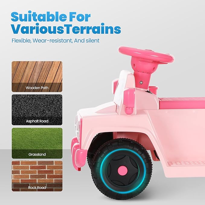 - 【Exciting & Safe Fun】 With LED front lights, a horn, and rear storage, the Alphakids Ride-On Car is perfect for little adventurers. Its charming Eyes theme adds excitement, making it a perfect gift for kids 18 months and up.