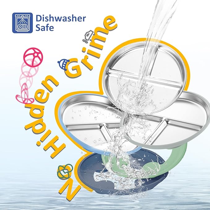 - Hassle-Free Cleaning: Resistant to food stains like carrots, the smooth stainless steel surface is easy to clean. Both the toddler plate and silicone suction sleeve are dishwasher-safe, making cleanup quick and stress-free for busy parents