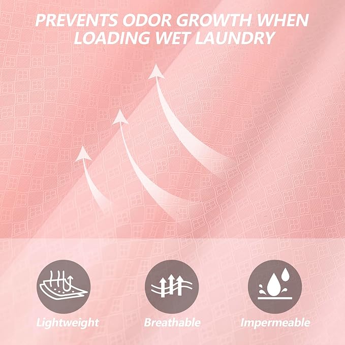 - [Water-Repellent/Lightweight/Breathable Nylon]: Made of washable and thin yet strong nylon, resists splashes from damp swimwear or pop-colored gym clothes.The material is both lightweight and breathable, preventing odors and keeping your laundry bag fresh.