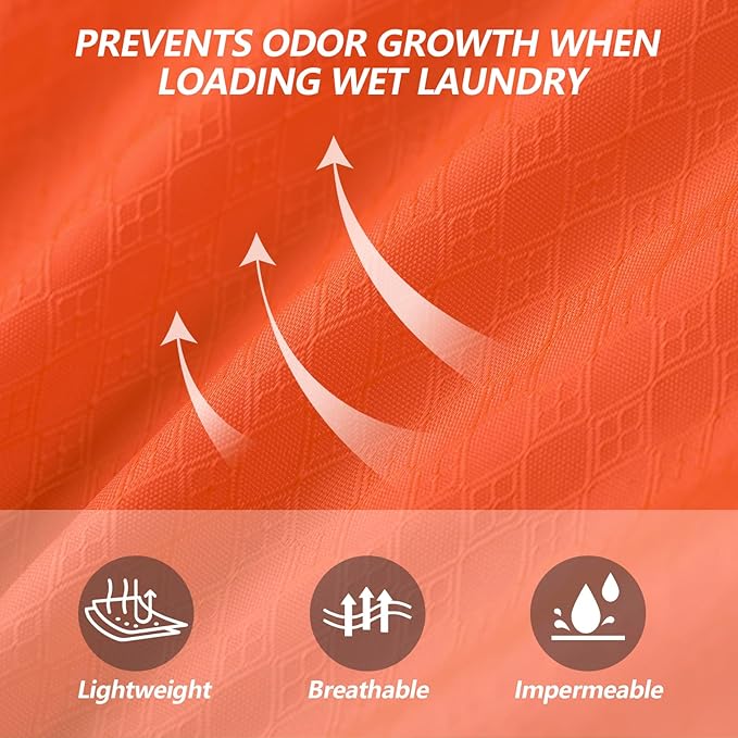 - [Water-Repellent/Lightweight/Breathable Nylon]: Made of washable and thin yet strong nylon, resists splashes from damp swimwear or pop-colored gym clothes.The material is both lightweight and breathable, preventing odors and keeping your laundry bag fresh.