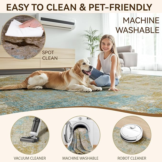- Tides Series โ Effortless style that flows with your life.This modern machine-washable non-slip rug features reinforced edges and a low-pile design that resists dirt. Its water-repellent surface makes spills easy to clean - liquids bead up for quick wiping. Simply machine wash in cold water (no bleach) to refresh. The non-slip backing keeps it securely in place. A perfect blend of function and contemporary design for active homes.