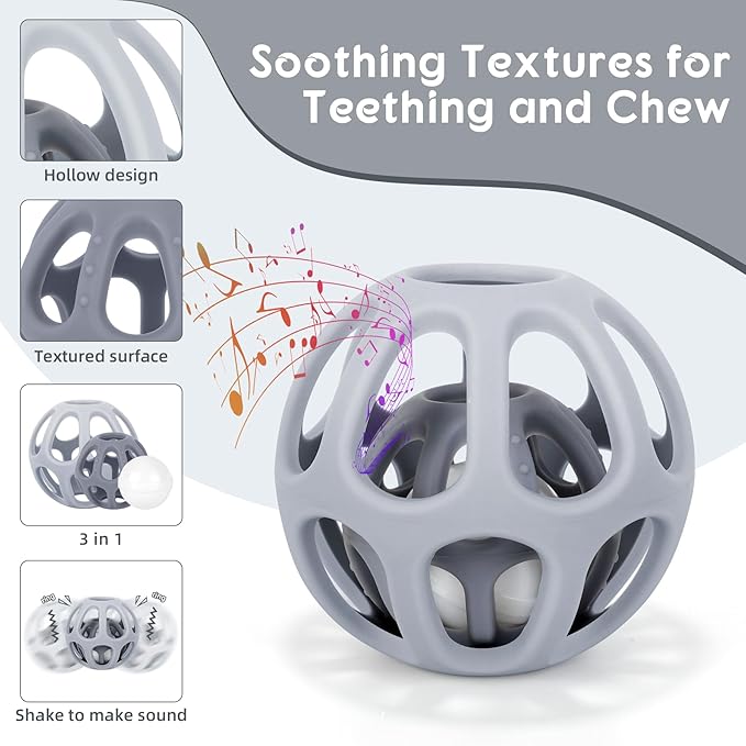 - 【Easy to Clean】We understand that parents need convenient solutions, which is why our silicone baby toys are incredibly easy to clean. Simply rinse them under warm water or toss them in the dishwasher (top rack) for a thorough sanitizing(excluding the rattle ball). They're always ready for the next playtime adventure!