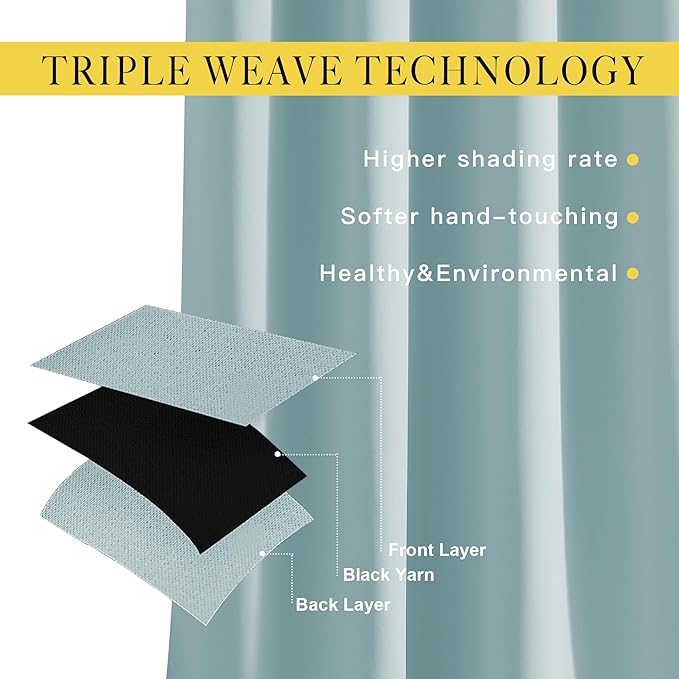 - Amazing Material: Super heavy and soft Blackout Curtain Panels are very upmarket. Besides, 85%-99% light blocking, thermal insulated, soundproof, and energy-efficient. Thread trimmed and wrinkle-free, both sides are the same color.
