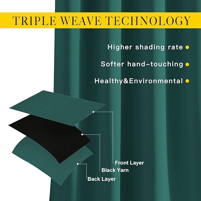 - Amazing Material: Super heavy and soft Blackout Curtain Panels are very upmarket. Besides, 85%-99% light blocking, thermal insulated, soundproof, and energy-efficient. Thread trimmed and wrinkle-free, both sides are the same color.