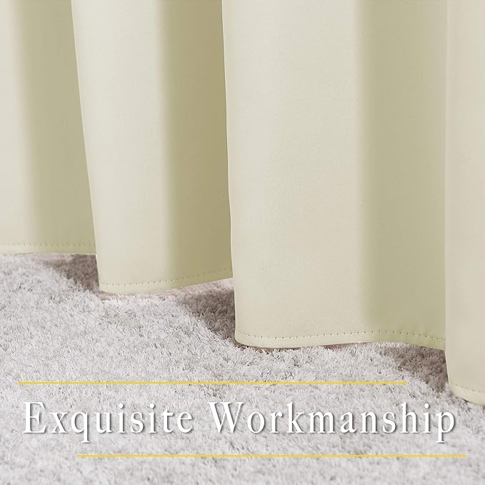 - Amazing Material: Super heavy and soft Blackout Curtain Panels are very upmarket. Besides, 85%-99% light blocking, thermal insulated, soundproof, and energy-efficient. Thread trimmed and wrinkle-free, both sides are the same color.