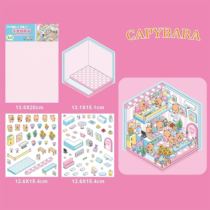 - Create Your Dream Mini Worlds: Craft 4 unique DIY 3D sticker scenes, including charming mini rooms and a delightful miniature supermarket, to build your own warm and whimsical home environment.