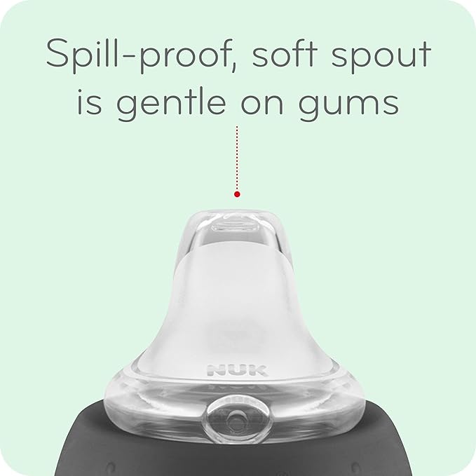 - Spill-proof soft spout is designed to be gentle on gums while teaching baby to drink from a spout; liquids flow easily when sipped
