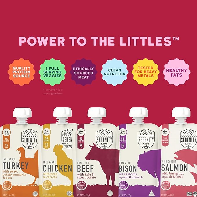 - FEEL-GOOD FEEDING: Rest easy knowing you’re feeding your baby ethically sourced ingredients. Serenity Kids supports small farms and humane practices, offering peace of mind with every squeeze