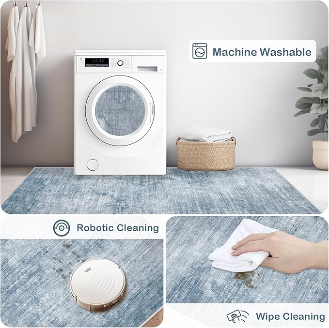 - Easy To Clean And Care: The low-pile design of the washable rug 5x7 makes it easy to find and clean stains in time, so you can just wipe and sweep the carpet on a daily basis, and the bedroom rug can also be put in the washing machine for a quick clean, it is easy to dry quickly, saving your time.