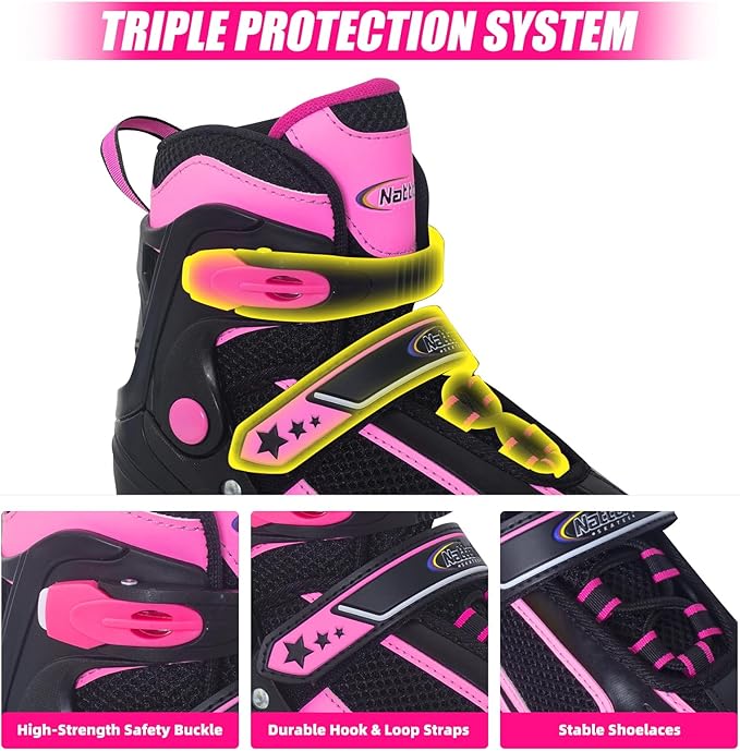 - PERFECT BIRTHDAY/CHRISTMAS GIFT: Nattork inline skates can be a perfect birthday/Christmas gift for your kids, grandchild or nieces and nephews. The kids will have a happy childhood. Affordable for beginners, we aim to provide a high quality experience. Suitable for over 4 years old children