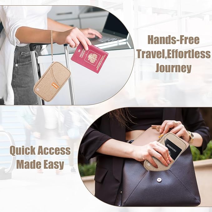 - THOUGHTFUL OUTSIDE STORAGE: The pocket is conveniently placed on the front of the passport wallet, which is great for storing your phone or any other frequently used items. The pocket slots are designed to be wide enough, enabling them to accommodate large cell phones. And it comes with a removable wristlet strap, You can keep everything at your fingertips, ensuring that your items are not only handy but also highly convenient to access at all times.
