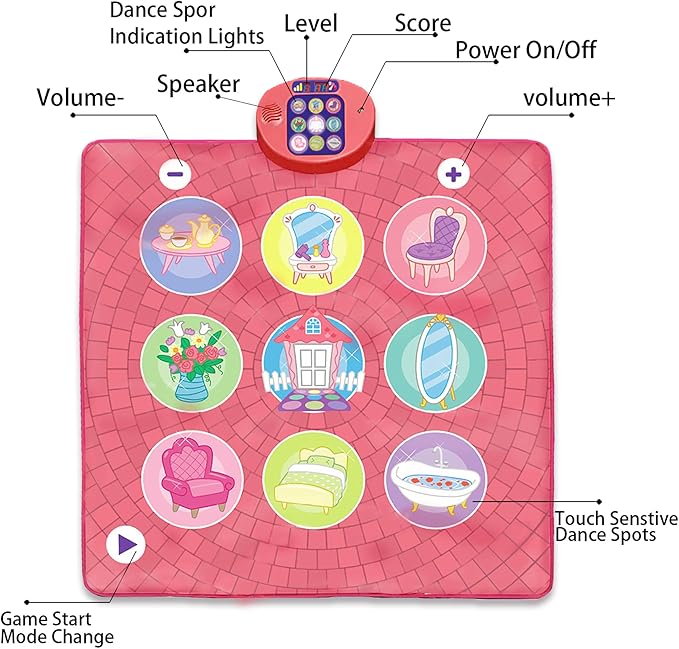 Dance Mat Toy for 3-12 Year Old Girls, Dancing Music Game Birthday for Kids, PlaymatScreen-Free Pink Dance Pad, Premium Speaker with Built-in Adjustable Volume Music, Perfect Christmas Birthday Gift