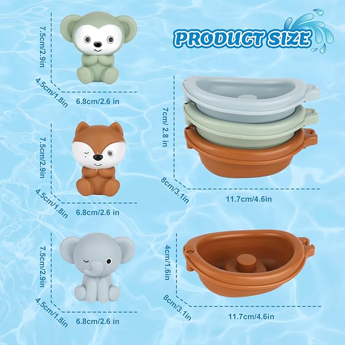 - ใ๐๐๐ญ๐ก ๐๐จ๐จ๐ฅ ๐๐จ๐ฒ๐ฌ ๐ฐ๐ข๐ญ๐ก ๐๐ฎ๐ฅ๐ญ๐ข๐ฉ๐ฅ๐ ๐๐ฅ๐๐ฒใโOur bath toy set includes 3 finger boats and 3 finger puppets. The 3 boats can be used as stacking toys, while the 3 finger puppets are great for animal role - playing and storytelling. With this bath pool toys, bath pool time will be a fun and enjoyable experience for your little one! It's the perfect bath toy for toddlers aged 1-3, ensuring they have a blast in the bathtub or in the pool