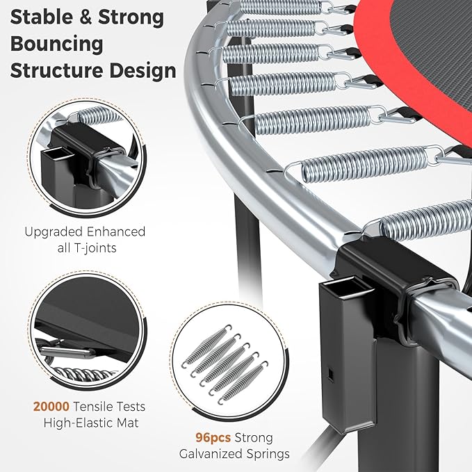 - 【The Ultimate Gift for Kids】A trampoline offers more than just fun; it's a gift of good health. It boosts the immune system, strengthens the skeletal system, helps control weight, and serves as a stress reliever. Our trampoline for kids and adults is a perfect outdoor gift