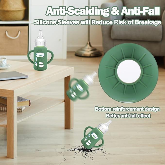 - Unique Designed for Baby Bottles - The silicone sleeves for Dr. Brown's Baby Bottles can against drop down,bumps and scratches. These are a must essential product for using glass baby bottles. They provide a more sturdy protection for glass baby bottle from breaking if dropped, which also unique handle design shape make it easier to grip and hold