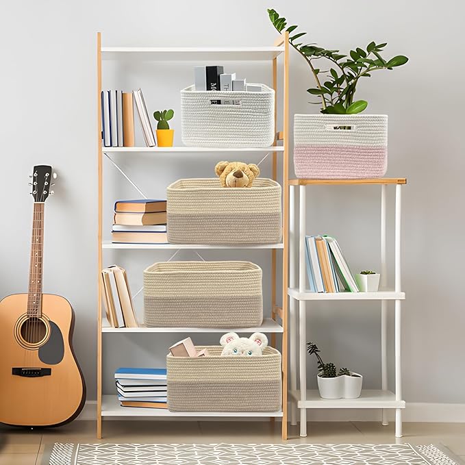 - CUTE STORAGE BASKET: Large Storage baskets are made by hand. They are chemical-free, non-toxic, and eco-friendly. No harm to health. And the soft material does not have to worry about hurting childre