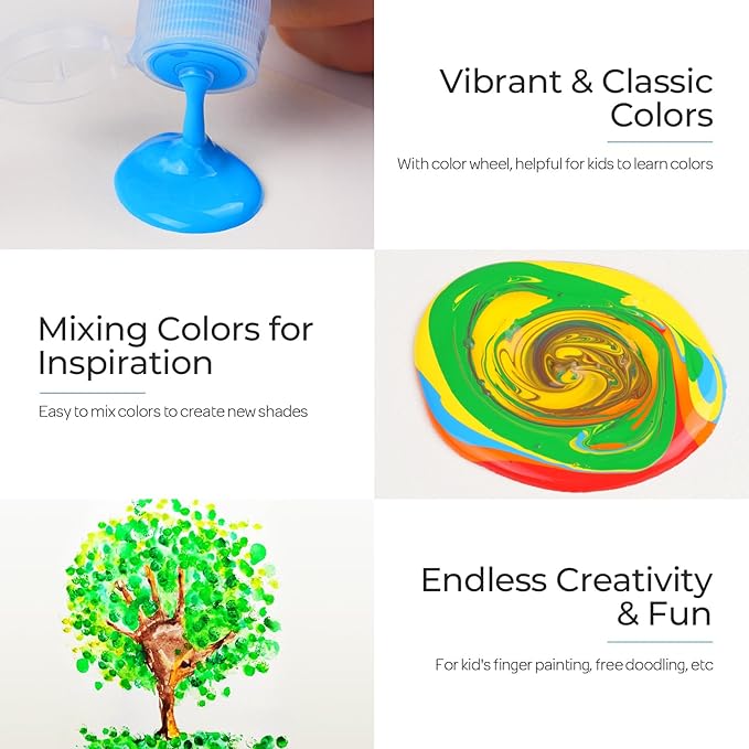 - Safe & Non-Toxic for All Ages: Made with a water-based, skin-safe formula that meets ASTM D-4236 standards. Safe for toddlers and young kids to use at home, or school—ideal for finger painting and sensory play.