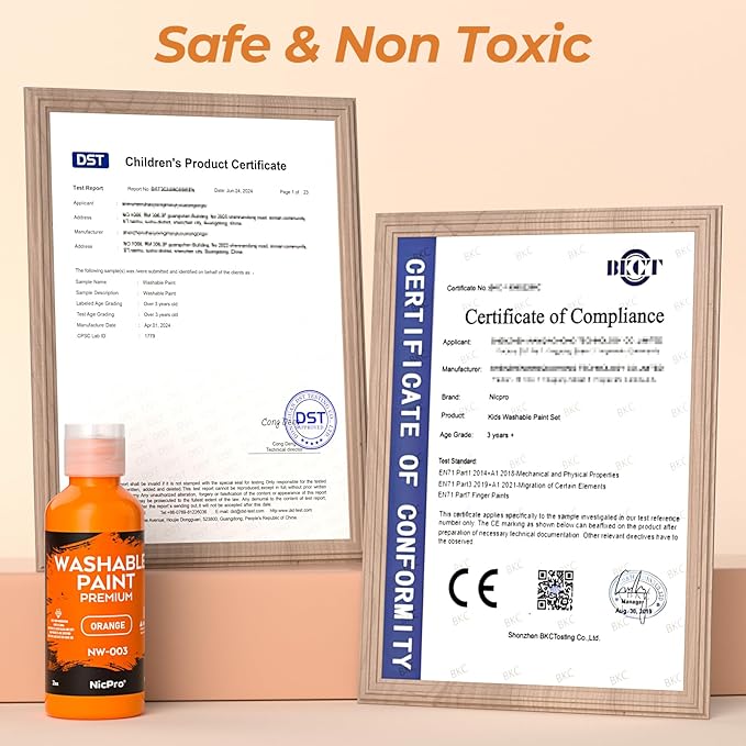 - Safe, Non-Toxic & CPC Certified – Made with child-safe, non-toxic ingredients that comply with ASTM D-4236 standards and come with a Children’s Product Certificate (CPC), ensuring safe use for kids aged 1 and up during crafts, finger painting, and early learning.