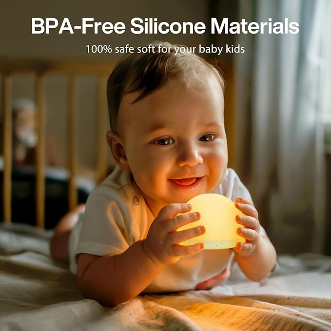 - Cloud Soft and Baby Safe: Crafted from BPA-free, food-grade silicone, this baby night lights for nursery is squishy, safe, and comforting to touch. Whether it’s used during sleep training or simply as a nighttime companion, the soft material is perfect for curious toddlers and gentle enough for newborns. It's totally safe for babies and toddlers to grab, hug, or even toss during play.