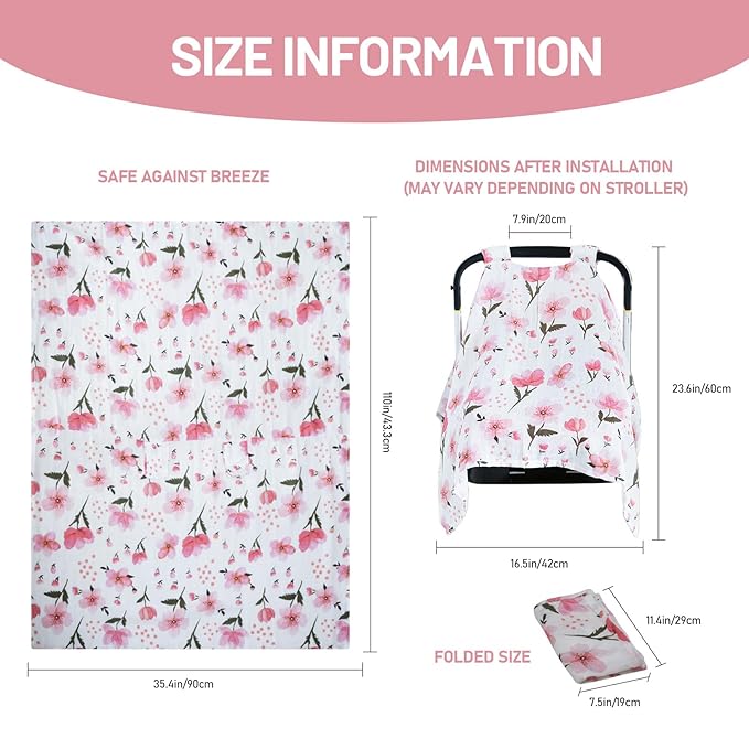 - Premium Thin-Layer Muslin Fabric: Made from high-quality muslin, this baby carseat cover offers a cool, breathable environment perfect for warm weather—providing a delicate, soft feel that’s both comfortable and durable.
