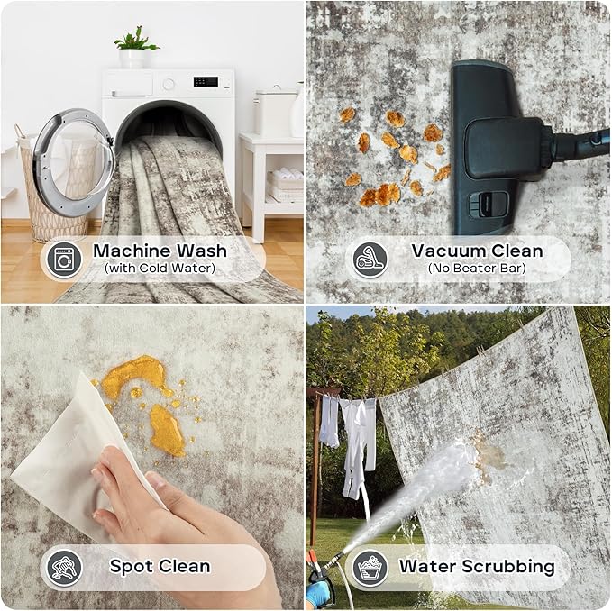 - Easy Maintenance: Keep your space fresh and clean with minimal effort. Our modern 6x9 area rugs are machine washable, spot-cleanable, and vacuum-friendly, making maintenance a breeze. Use a low-power vacuum regularly to remove dust or pet hair for everyday care. Avoid using bleach for best results