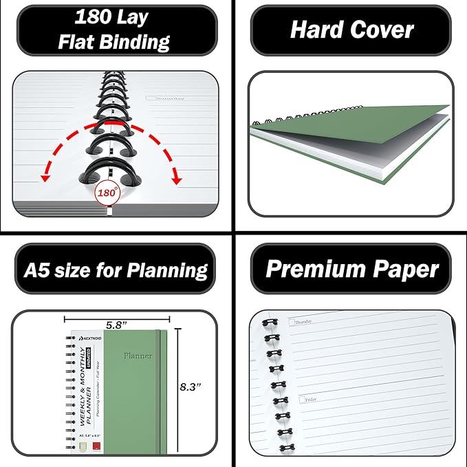 - All-in-One Planner Notebook - Designed for real life with both monthly and weekly planner views in one compact A5 planner. Perfect for organizing appointments, tasks, and goal setting in one place.