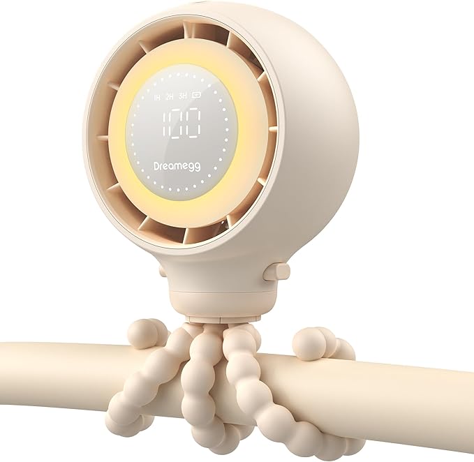 Dreamegg Portable Stroller Fan - 4000mAh Rechargeable Baby Stroller Fan With LED Display, Night Light, Hidden Blade, Detachable 4 Speed 360ยฐRotate, Handheld Cooling for Crib,Travel, Car Seat, Bedroom