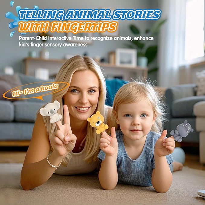 - ใ๐๐๐ง๐ฌ๐จ๐ซ๐ฒ ๐๐๐ฏ๐๐ฅ๐จ๐ฉ๐ฆ๐๐ง๐ญใThis toddler toys for 1-3 year old boy/girl, helps enhance their finger sensitivity while providing chances to explore different textures. We can also use this set of finger puppets to tell animal stories to our little ones. This not only strengthens the parent - child relationship but also helps your toddler recognize animals, colors, enhancing their finger sensory awareness.Ideal sensory toys for toddlers 2-3 that nurture growth