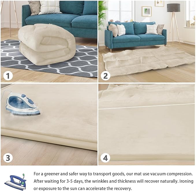 - 🌟HOW TO CARE FOR YOUR MAT:When you open the package,it may be wrinkled,very flat and inelastic.Don't fret - this is normal! As long as it is left for 3-5 days, the mat will naturally regain its thickness and elasticity. we recommend steaming or ironing it to speed up recovery. After you have completed the steaming/ironing, your thick floor padded mat should rebound and be ready to use!