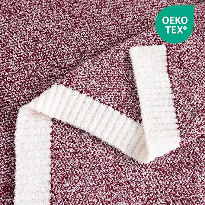 NEXHOME PRO Soft Throw Blankets for Couch, Reversible Warm Blankets Cozy Knit Blanket for Women, Fuzzy Plush Lightweight Throws for Sofa, Bed, Picnic, Wine 50 x 60 inches