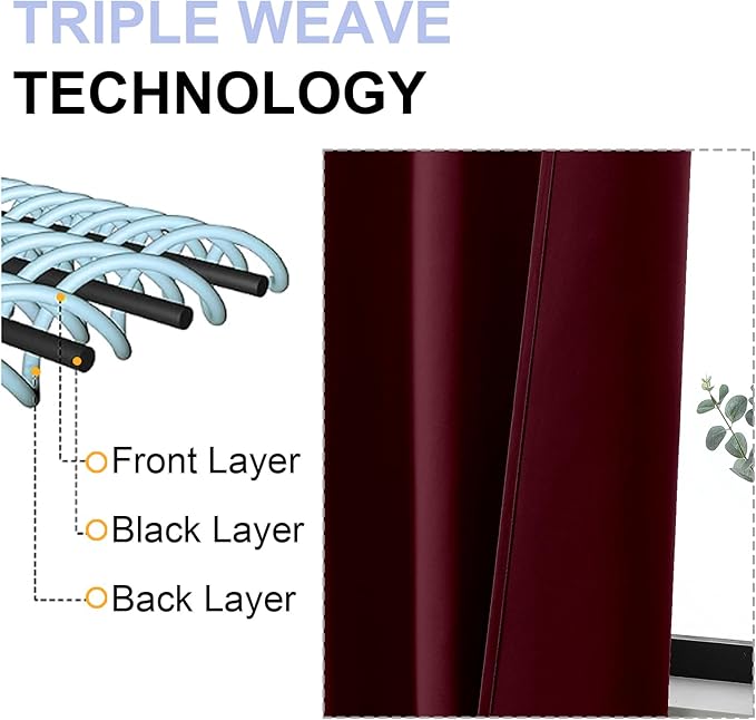 - High-Quality Materials: Crafted from high-quality polyester fiber, guarantee both stiffness and drape. This soft yet durable light-blocking fabric boasts a three-layer weave, with a middle layer of black yarn acting as an effective light-blocking panel, effectively blocking light while providing privacy. The identical colors on both sides further enhance its aesthetic appeal, adding a touch of elegance to your home.