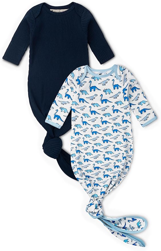 • Introducing our 2-pack of the ultra-comfy knot it gown, so cozy that our 6-month-old model couldn't resist dozing off! The best part: an adjustable tie for easy diaper changes!