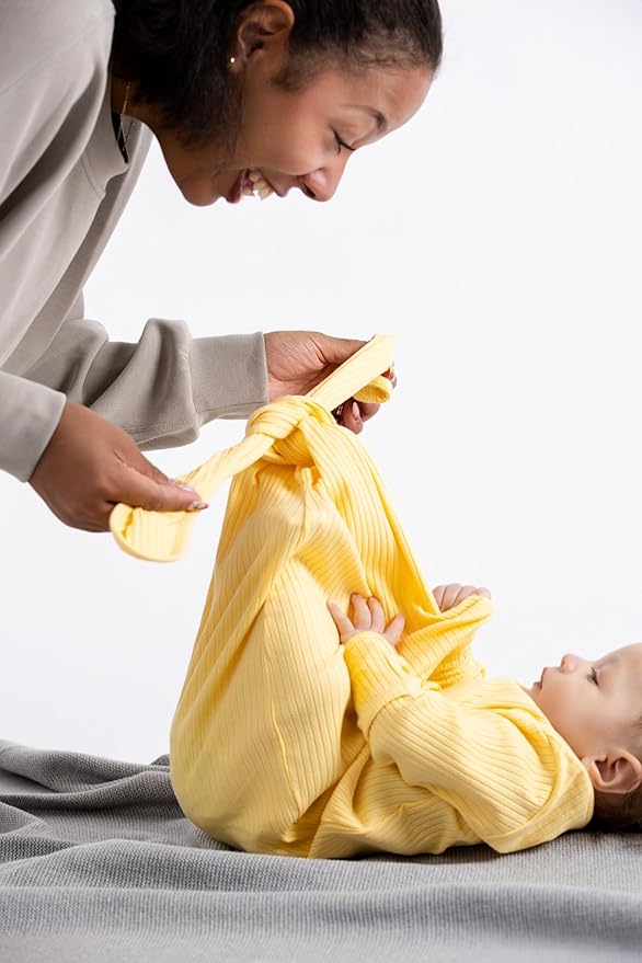 • Introducing our 2-pack of the ultra-comfy knot it gown, so cozy that our 6-month-old model couldn't resist dozing off! The best part: an adjustable tie for easy diaper changes!
